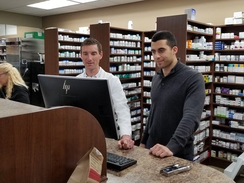 Melanie, a pharmacist, and Ben Austin in the pharmacy