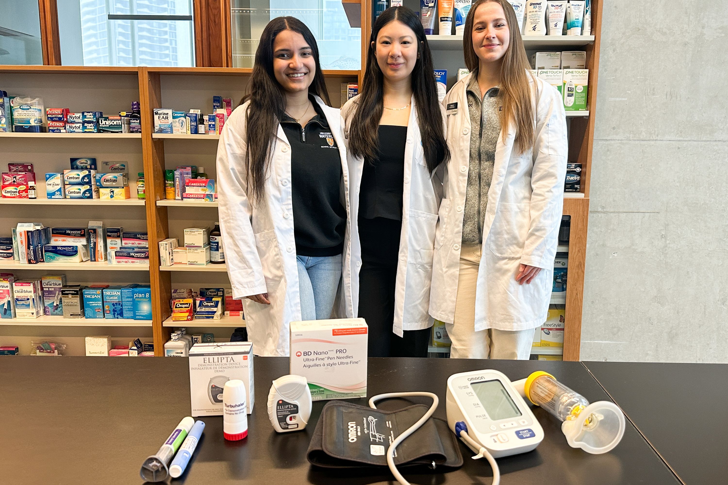 Three Waterloo Pharmacy students participated in an interprofessional education outreach event alongside students from Waterloo Optometry and McMaster Medicine and Physiotherapy. The healthcare students engaged high school learners in grades 10 to 12, while gaining firsthand experience in how different health professions work together to support patient care.