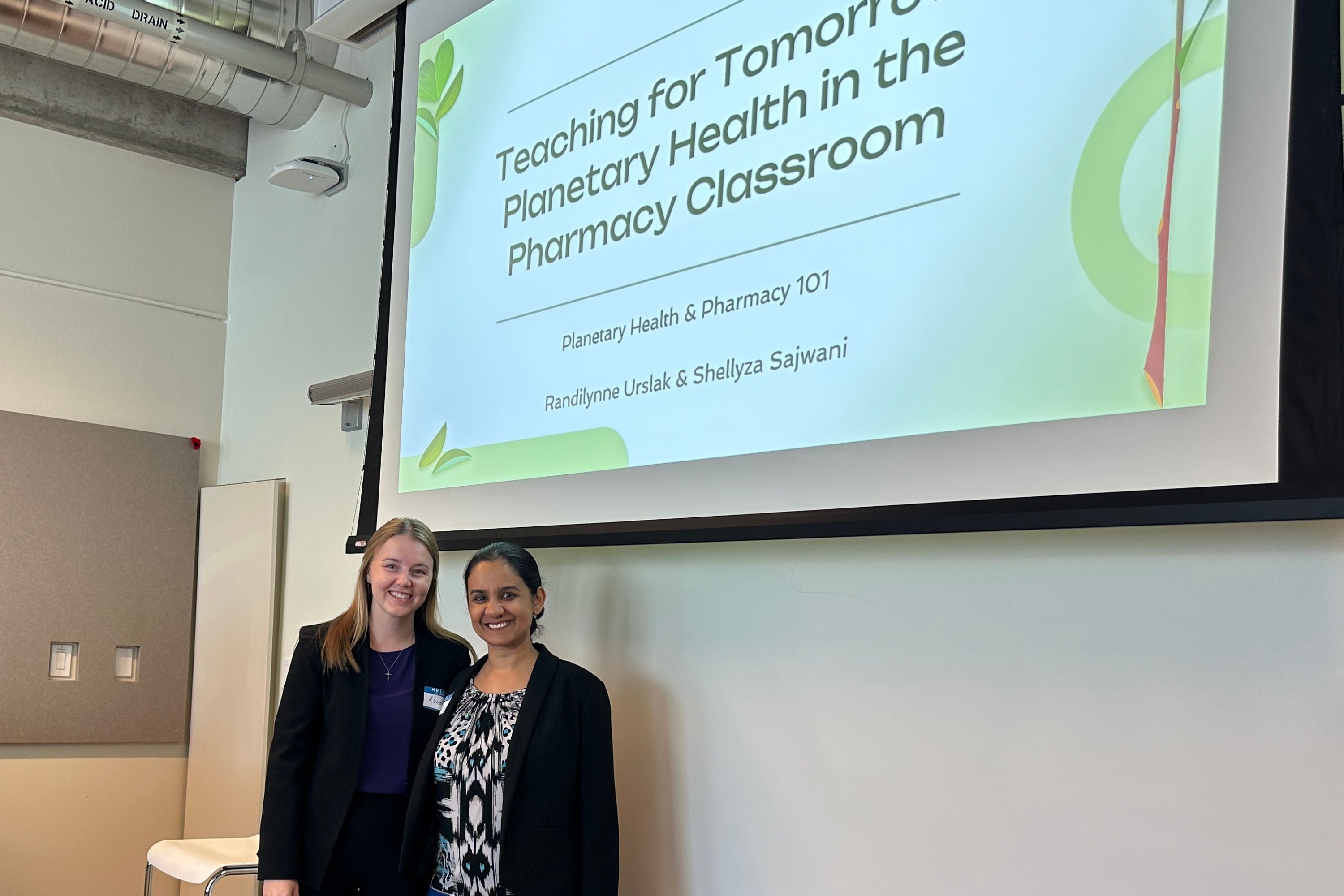 The event was led by Canadian Association of Pharmacy for the Environment (CAPhE) co-chair Shellyza Sajwani, and Waterloo Pharmacy alum Randilynne Urslak (Rx2023), who are both pharmacists, planetary health experts and adjunct professors at the University of Ottawa. The workshop covered topics that focused on how pharmacy intersects with planetary health including climate mitigation and adaptation, disaster planning, responsible use of medication resources, patient counselling and strategies for integrating planetary health into the pharmacy curriculum.