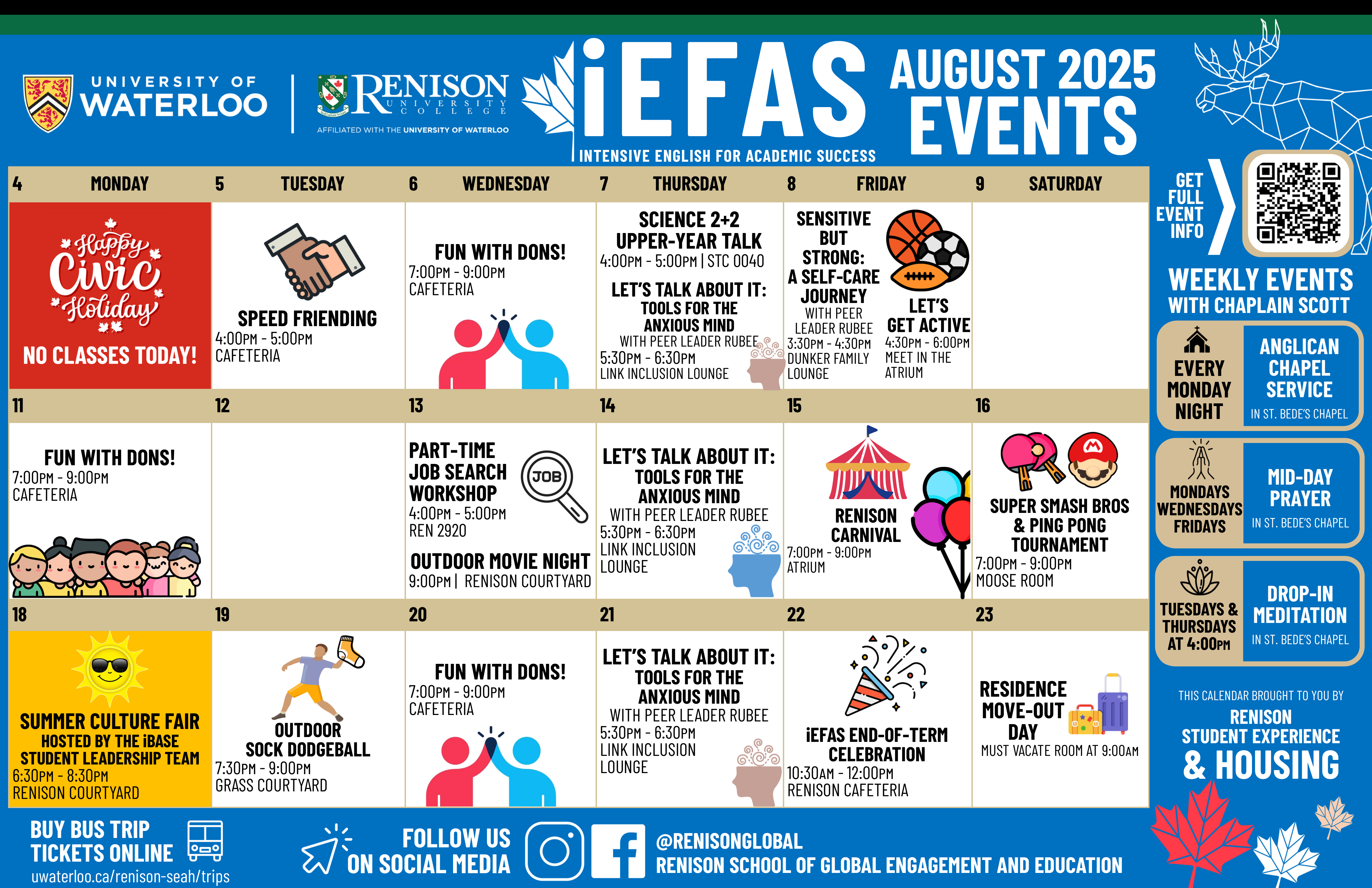 Summer is coming to an end, but that fun doesn't have to stop! Check out what's happening in your Renison community this August and please come join us.