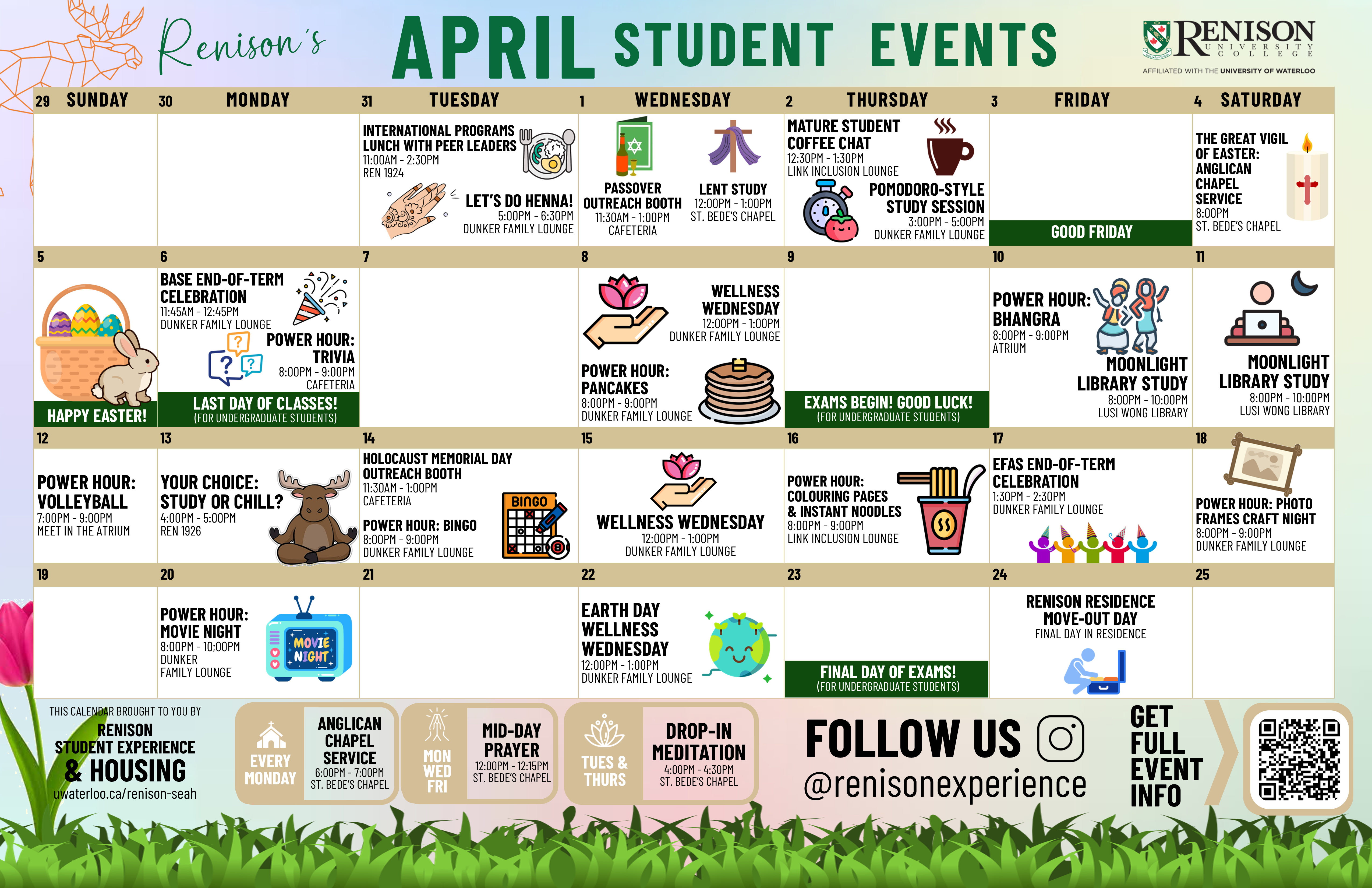 Visit our Student Experience and Housing Events Calendar page to read descriptions and full details about each event. We encourage you to download the iCal on our Events page so that you can easily view all upcoming events from your phone!