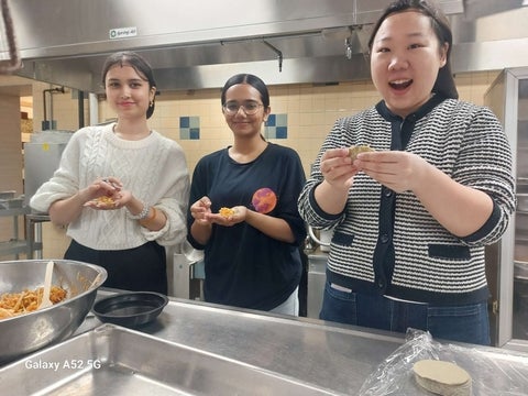 Happy students making dumplings for our Chinese New Year event