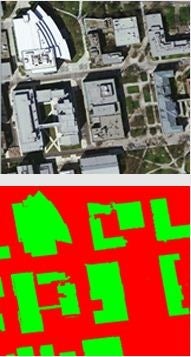 Split image: top showing overhead picture of buildings and bottom showing shape recognition