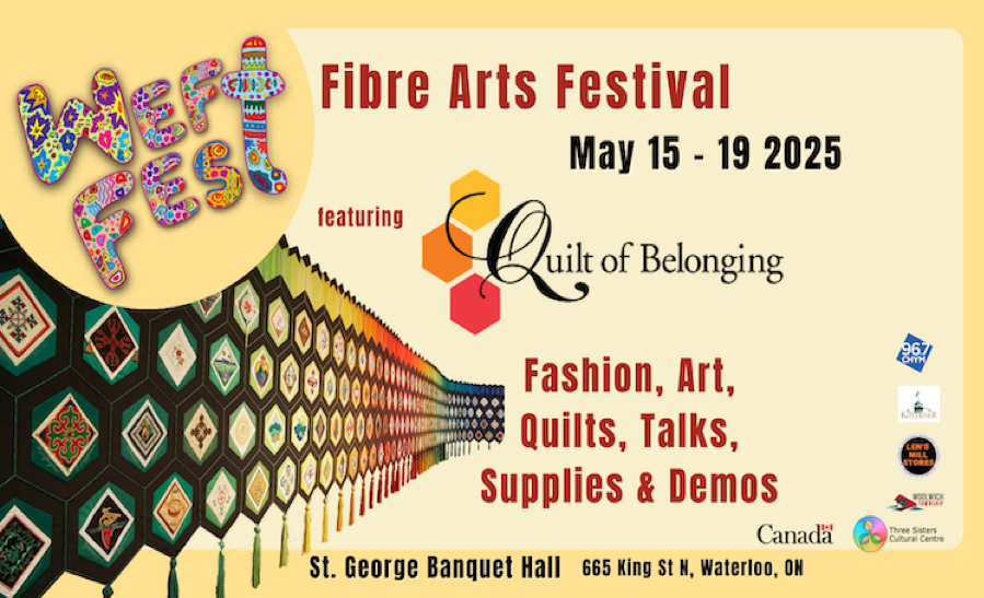 The Quilt of Belonging will be part of this year’s Fibre Arts Festival from May 15 to 19 at the St. George Hall, Waterloo. The Quilt of Belonging is both a visual and symbolic representation of multiculturalism and shared humanity, initiated by artist Esther Bryan in 1988 and completed in 2005, to promote unity and a sense of belonging by showcasing the rich cultural heritage of people living in Canada. It is massive, featuring 263 blocks, each representing a different cultural group found in Canada, including all First Peoples and every world nation with a presence in our country. The quilt has toured across Canada and internationally, often displayed in museums and community centers and will soon find a permanent home at the TriSisters Art House in St. Jacobs. A 48-minute documentary about the quilt’s creation is receiving rave reviews.