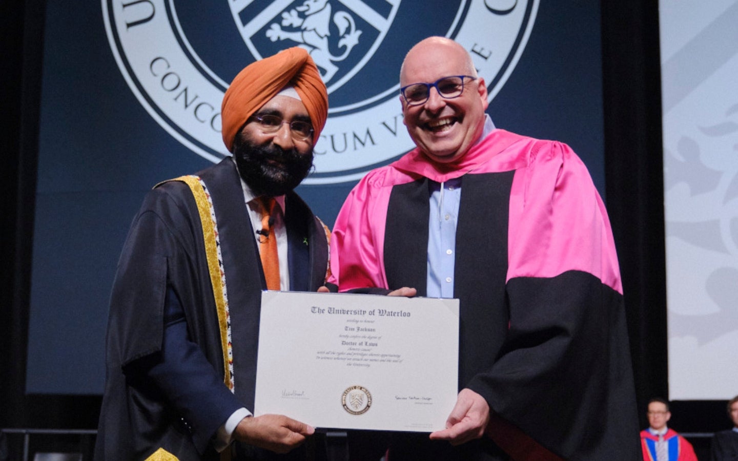 Jackson has proven to be a leader in every space he has entered, dedicated to engaging with and improving his community as well as the institutions and businesses he serves. We congratulate Tim Jackson on this well-deserved recognition as he receives the University's highest honour for his exceptional contributions within the University, Waterloo Region and beyond.