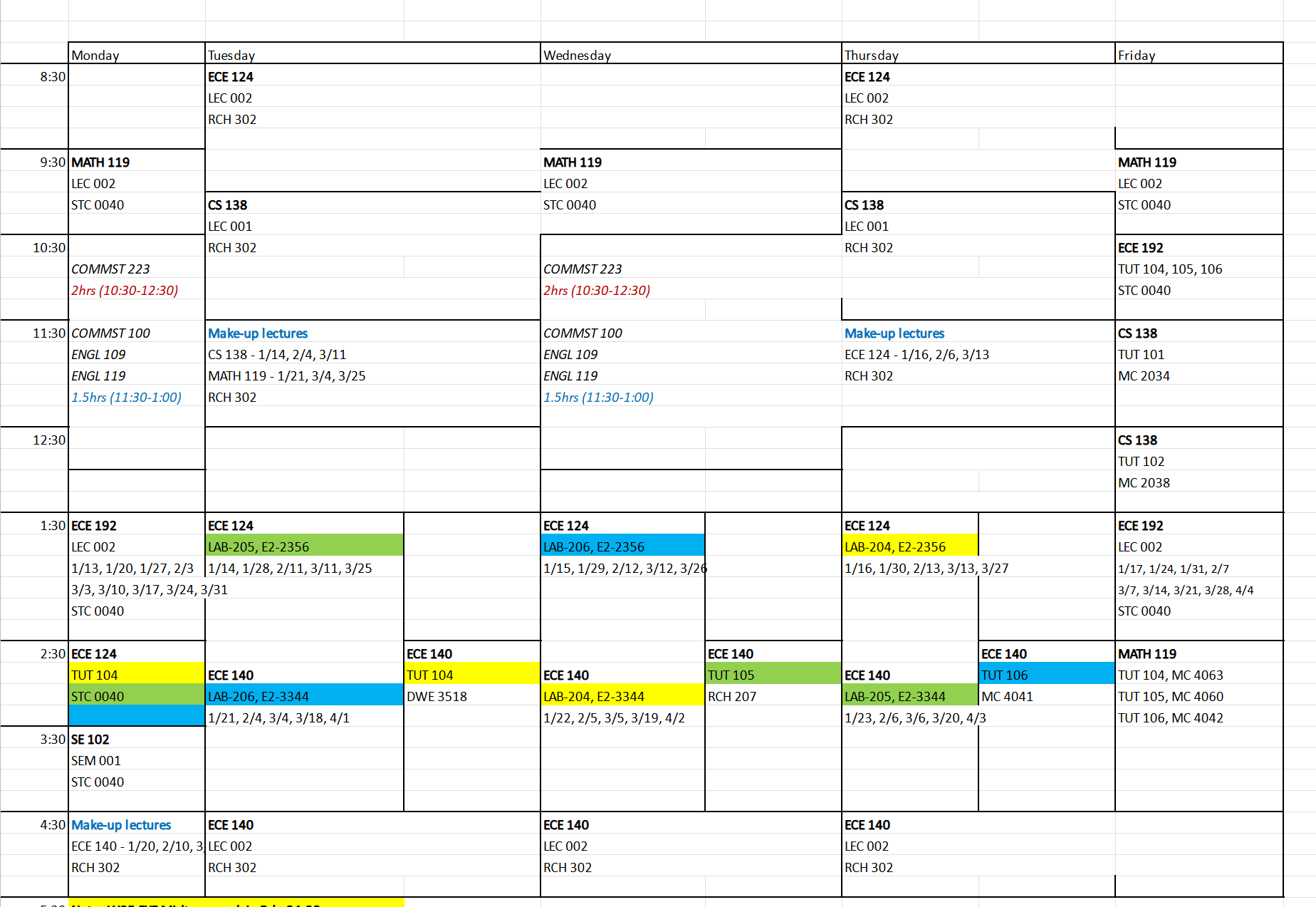 Schedules: 1B class schedule, final exam schedule, class prof hour schedule (TBD)