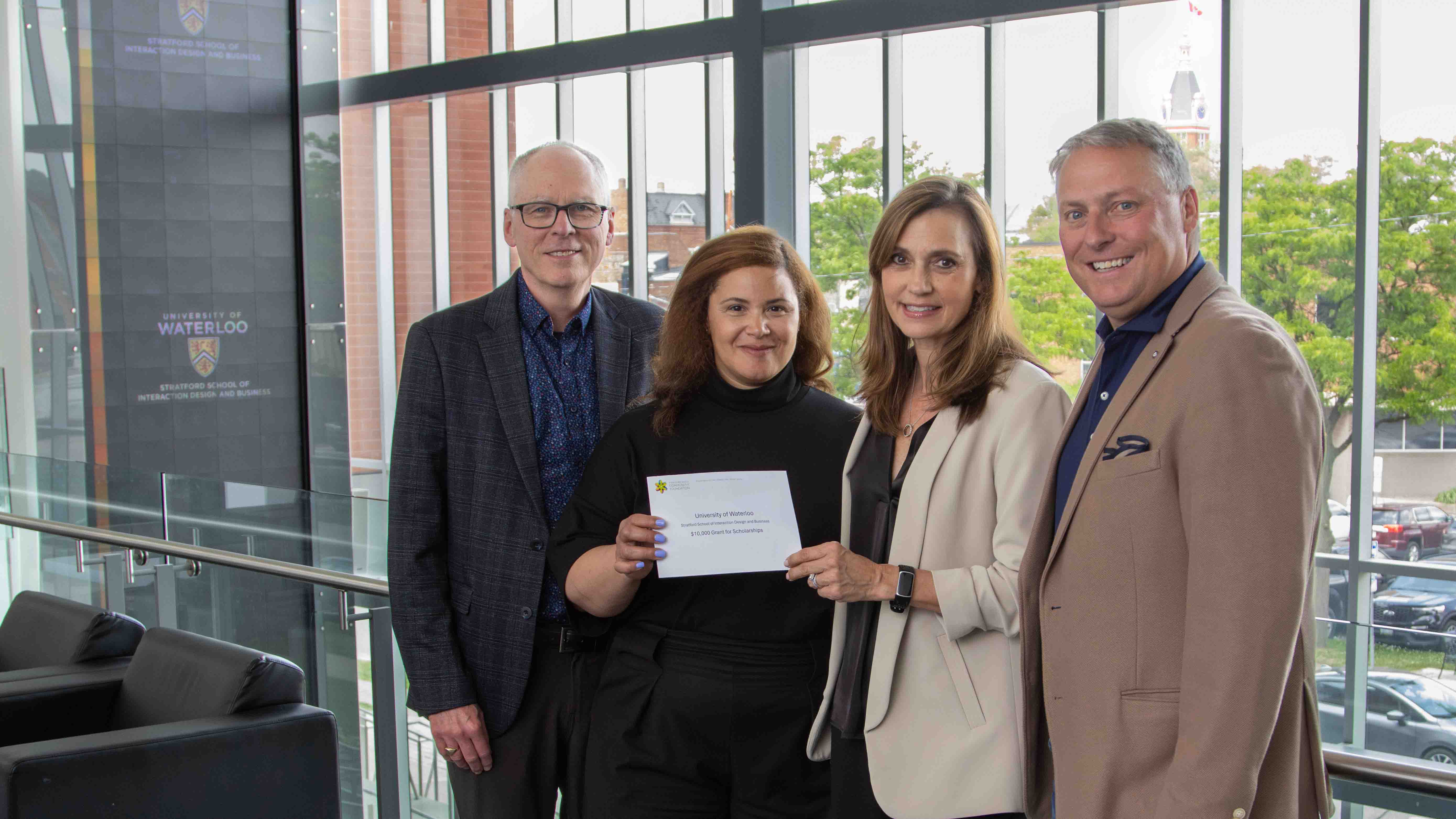 This spring, Mathieson, Wilkinson, and 38 of their friends came together to raise the funds while enjoying a performance of “Annie” at the Stratford Festival followed by a delicious dinner at Pazzo restaurant. The Stratford Perth Community Foundation provided participants with donation receipts for the charitable portion of the fee, and by the end of the evening, they were able to present the University with a $10,000 cheque in support of the Global Business and Digital Arts Entrance Scholarship.