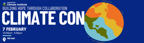 Join the Waterloo Climate Institute's Student Climate Action program for a full-day convention on February 7th, 2025 showcasing student research and projects that are tackling climate anxiety and hope! Attend presentations, workshops, panels at FED Hall, win prizes, student awards and enjoy a delicious lunch!