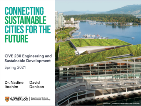Each year since 2020, as part of CIVE 230 – Engineering and Sustainable Development, undergraduate students are required to complete a deliverable for the sustainability project. This project enables students to explore sustainability challenges and solutions in various regions around the world. The results of these projects are compiled into E-Books that can be found on the Open Educational Resources (OER) Commons page, showcasing the students' work on global sustainability issues. Each of the six E-Books from 2020, 2021, 2022, 2023, 2024 and 2025 are pictured below.