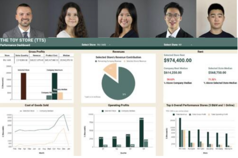 Approximately 570 first year students from the School of Accounting and Finance (SAF) at the University of Waterloo, organized in 117 crews/teams, competed in the 2nd annual UW CISA interactive performance dashboard competition. Crews had to develop an interactive business dashboard for TTS, a toy store retailer that operates 20 stores from Maryland to Maine. Teams had to leverage one year’s worth of data (over 4.5 million records) to build their dashboard. The main objective of the dashboard was to enable the management of TTS to monitor the company's performance in four key areas: gross profits, revenues, cost of goods sold, and operating profits.