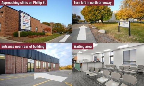 The University of Waterloo GO bus terminal, the Research & Technology Ion Station and several Grand River Transit stops are within walking distance of the clinic. Accessible transportation services such as MobilityPlus can take you to the door.