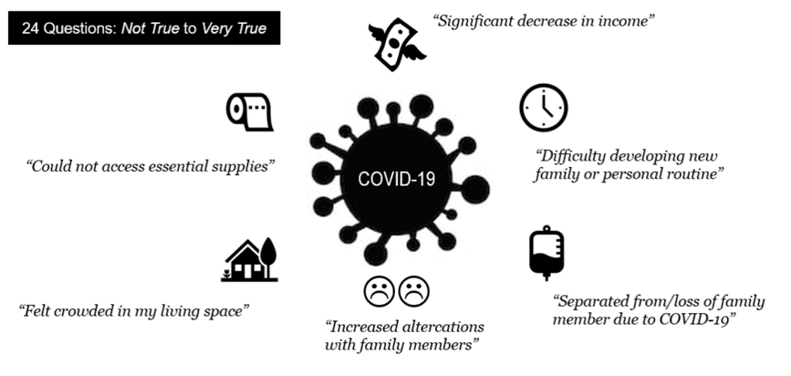 To measure the impacts and stressors related to the COVID-19 Pandemic, our team created the COVID-19 Life Changes Scale.