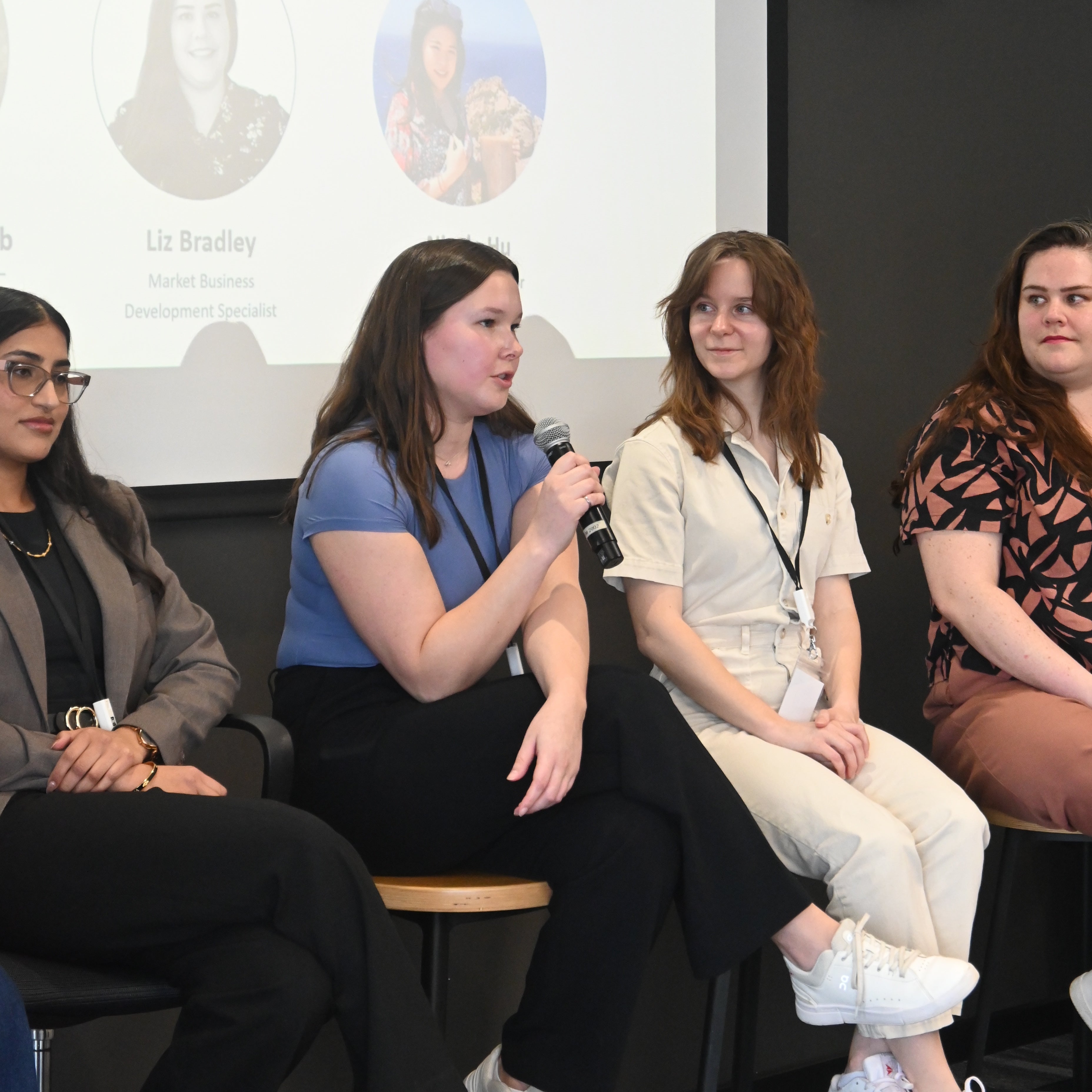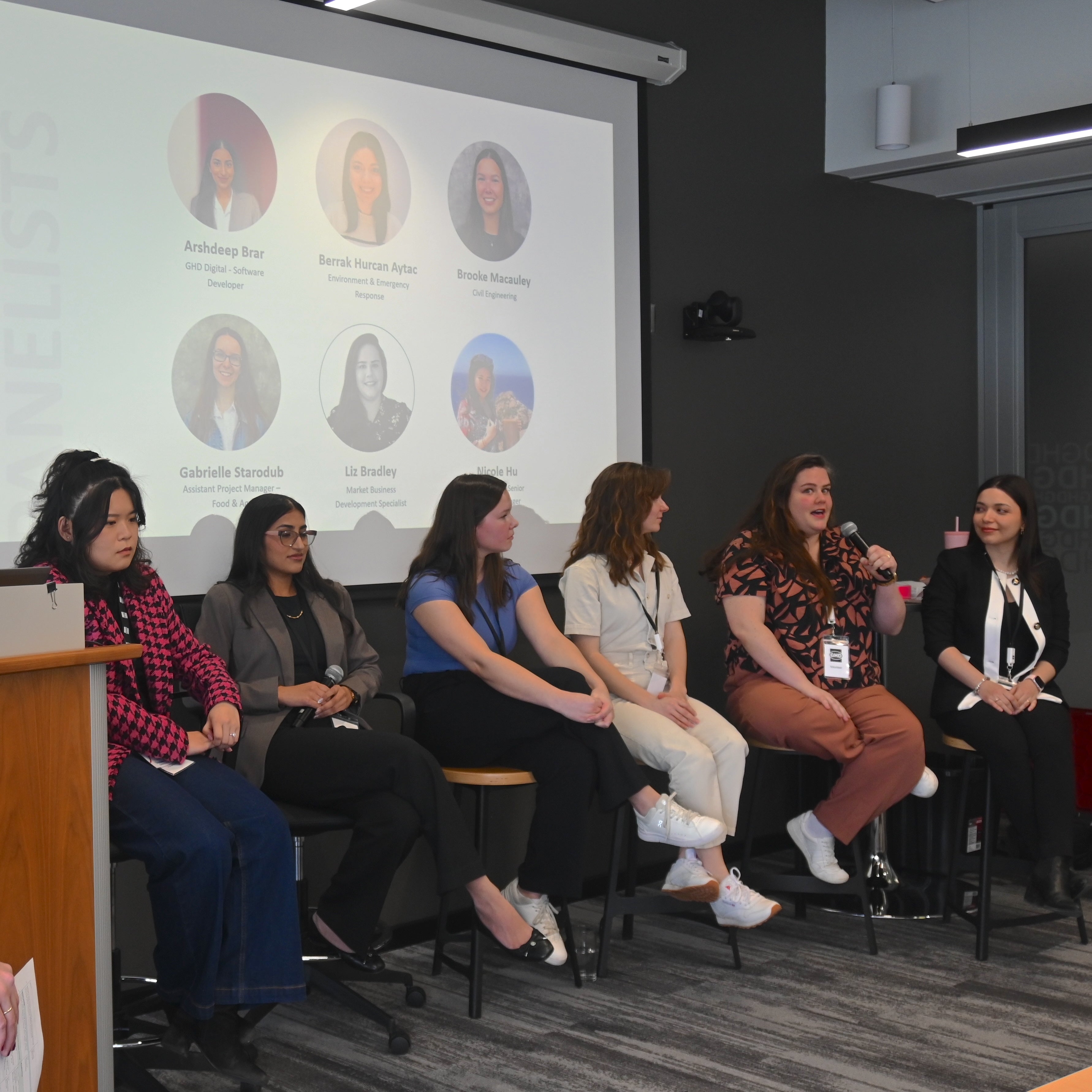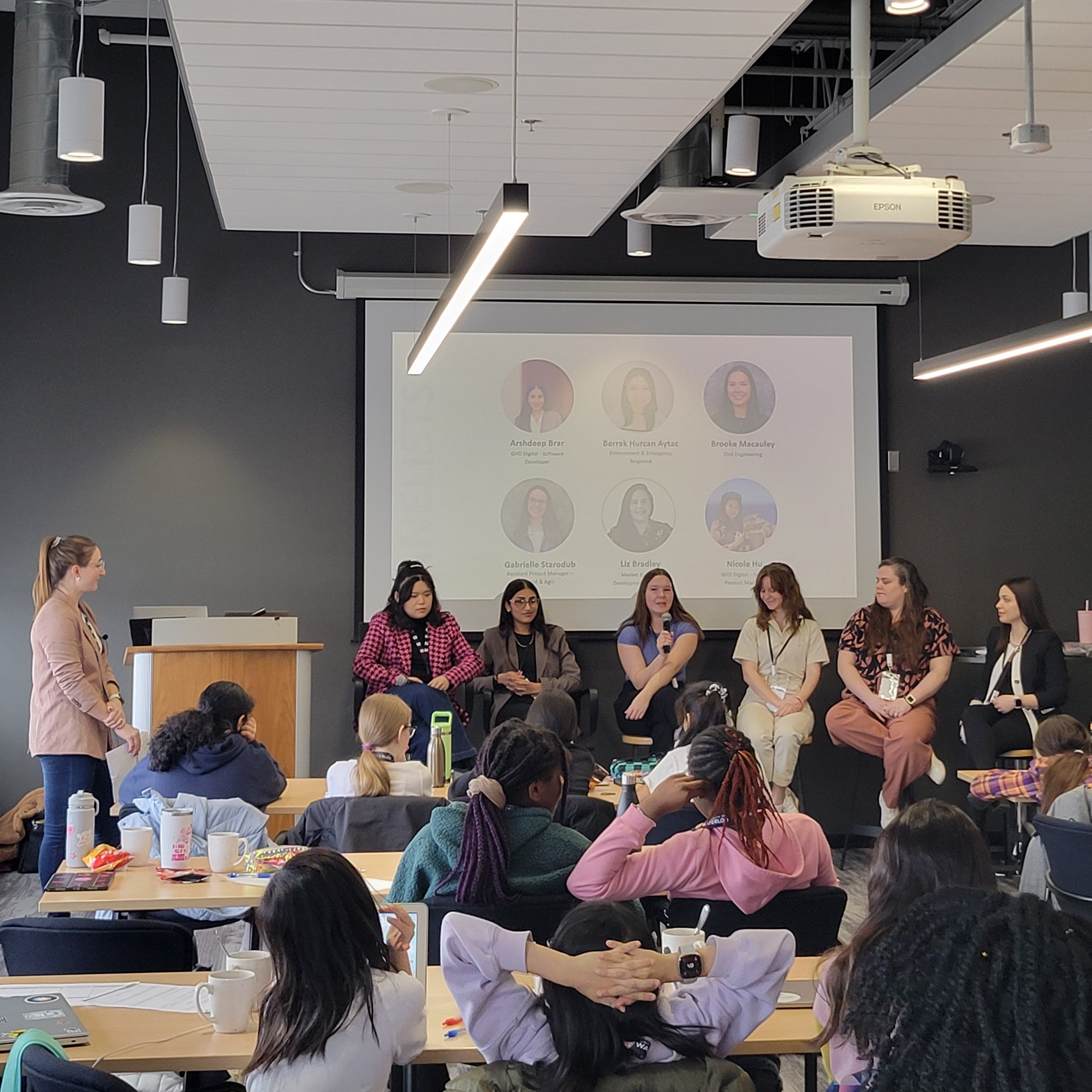 The afternoon began with a panel of six women from GHD. They talked about their careers, their roles at GHD, and shared helpful advice for anyone interested in a tech career. This also gave participants a valuable glimpse into the range of roles available at tech companies, encouraging even those less familiar with tech that there are exciting career opportunities for them as well.