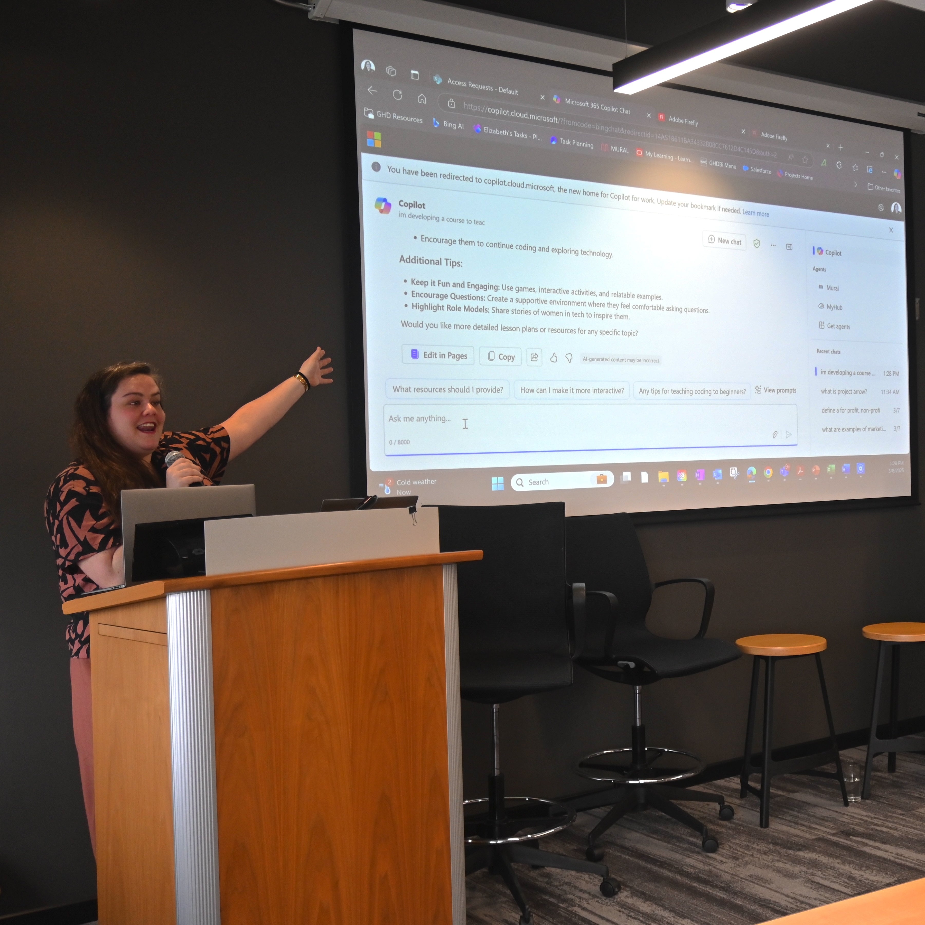 The day started with an introduction to GHD by Madeline Weber, the Events and Marketing Manager. After that, the junior and senior teams split for separate 30-minute presentations. Senior teams received an overview of business plans and their key elements, while junior teams learned about what user adoption is and its importance for their app ideas. These sessions provided a solid foundation for the teams to begin working on their plans. Throughout the morning, teams worked together to brainstorm and start drafting their respective plans.