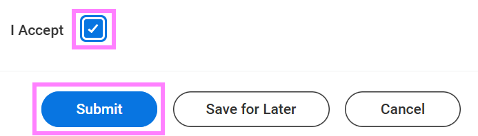 - Once sent, click I Agree and Submit at the bottom of each inbox form task to complete your benefit changes. Make sure to repeat this process for all Review Document tasks in your inbox as applicable - there should be no tasks left in your inbox when you are done.