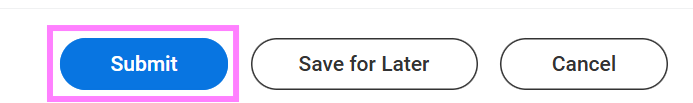 Note: No changes are completed at this point. If you navigate away from this task, it will be saved in your Workday inbox for you to complete and submit from there.