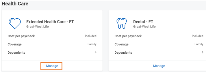 - Click Manage under the Extended Health Care plan.